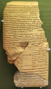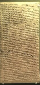 ASSURBANIPAL ne s’est pas cantonné aux questions oraculaires et religieuses. Témoignant d’une curiosité que l’on pourrait qualifier d’encyclopédique, il ambitionnait en quelque sorte de constituer une “bibliothèque universelle“, dans laquelle les sciences seraient très présentes, à l’image de la médecine, de l’astronomie et des mathématiques ; de même que des listes lexicales, de la comptabilité et de la correspondance administrative et diplomatique. Mais l’une des grandes originalités de cette “bibliothèque royale” était d’avoir réservé une place de choix aux œuvres purement littéraires, souvent liées à la mythologie. C’est ainsi que s’y trouvaient des classiques, tels que le Mythe d’Adapa, le Mythe d’Etana, l’Enuma Elish, récit centré sur le dieu Marduk, le Pauvre Hère de Nippur, et surtout l’Epopée de Gilgamesh (ci-dessous).