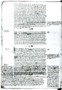 Nous pourrions croire l’affaire entendue et ranger la Biblioteca Colombina dans la famille des “belles disparues“, mais une trouvaille providentielle va permettre de la tirer de l’oubli et de lui rendre, a posteriori, sa grandeur passée. En effet, en 2019, un des registres de COLOMB refait surface. Il ne s’agit rien de moins que du catalogue de fiches de lecture que ce dernier avait commandées à toute une armée de lecteurs recrutés par ses soins. Ce recueil de 1964 pages, connu sous le nom de El Libro de los épitomés, contient la fiche d’identité et le résumé détaillé – parfois sur plusieurs feuillets – de plus de 1 877 ouvrages, en majorité inconnus ou réputés disparus (un exemple ci-dessous).