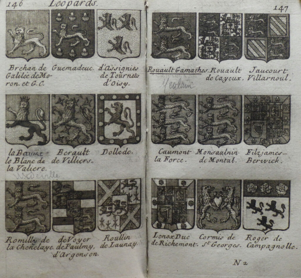 Au terme de ce classement, le lecteur devra donc, pour retrouver le blason de la famille FOUQUET de BELLE-ISLE, chercher à “Écureuil”, celui des GOURDON de GENOUILLAC à “Étoiles”, celui des SÉRICOURT d’ESCLAINVILLIERS à “Croix chargées”, ou celui de NIGOT de SAINT-SAUVEUR à “Double fasces accompagnées”. Il est à noter que nombre de pages portent des blasons vierges, sans que nous ne connaissions la raison d’un choix de mise en page qui laisse une impression d’inachevé. Au total, l’ouvrage propose 1 778 blasons dessinés dépourvus de toute description dans le si particulier langage héraldique. CHEVILLARD mourra à Paris en 1751. D’autres ouvrages sur l’héraldique se succèderont dans les décennies suivantes, comme celui de Denis-François GASTELIER de LA TOUR, à qui l’Encyclopédie doit la majeure partie des articles sur ce thème. Malgré la parenthèse de la Révolution, le sujet reviendra à la mode au siècle suivant. En effet, le Premier Empire et le Second Empire recourront de nouveau à l’anoblissement, et beaucoup de familles se feront créer un blason. Édité pour la première fois en 1852, le dictionnaire de Charles de GRANDMAISON restera longtemps une référence incontournable, comme celui publié quelques décennies plus tard par Camille Philippe DAYRE de MAILHOL