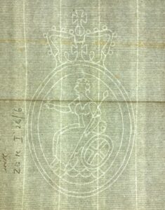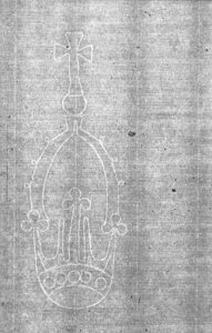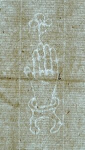 La première sorte d’image se trouve à l’intérieur du papier lui-même. Déjà présente en Espagne où elle a été introduite par la civilisation arabo-musulmane, l’industrie papetière se développera en Italie à partir du XIIIe siècle. C’est à Bologne, en 1282, qu’est attestée l’existence d’une nouvelle technique qui va rapidement se répandre en Occident, en particulier en France et dans le Saint-Empire : le filigrane, mot emprunté au vocabulaire de l’orfèvrerie et composé à partir des mots latins Filum (fil), et Granum (grain). Cette technique a pour but, au cours du processus de fabrication, de marquer d’une empreinte interne les feuilles de papier. Celles-ci ont longtemps été fabriquées suivant la technique dite “à la cuve“. La pâte, en grande partie issue de chiffons reconditionnés, était prélevée dans un grand récipient à l’aide d’une forme constituée d’un cadre en bois, dont le fond était garni d’un réseau de fils en métal ou en fibres végétales appelés vergeures, lesquelles reposaient elles-mêmes sur des traverses en bois perpendiculaires : les pontuseaux. C’est alors qu’intervenait une petite manipulation. Un fil de laiton ou de cuivre formant un motif était fixé sur le treillage. Les feuilles étaient ensuite sorties, pressées entre des morceaux de feutre, séchées puis soumises à un encollage qui les rendait lisses et résistantes ; mais elles restaient définitivement marquées par le dessin du fil – nommé “watermark” par les anglophones -, qui n’était visible qu’en observant par transparence la feuille devant une lumière vive. De nos jours, lorsque le papier s’est assombri, il est parfois nécessaire de recourir à la bêtagraphie pour découvrir le filigrane dans son intégralité.