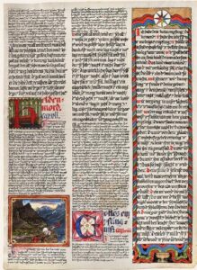 Si le contenu de l’ouvrage est bien particulier, compte tenu de sa nature intensément introspective et expérimentale, aux confins de l’onirisme et du symbolisme, sa conception ne l’est pas moins, car JUNG va donner à son manuscrit une forme inattendue et pour le moins spectaculaire. Comme il le dira lui-même, “il faut que je reprenne les choses à l’intérieur de moi-même à un moment du Moyen Âge […] Je dois repartir aux débuts, à ce moment où les moines ermites ont disparu“. Sans rapport avec ses sobres carnets de notes noirs, il va se lancer dans une rédaction et une mise en page très soignées qui vont rapprocher son œuvre de celles des copistes et enlumineurs du Moyen Âge. Les premières pages – qui constitueront par la suite la partie dite “Liber Primus” – sont d’ailleurs exécutées sur des feuilles de parchemin. Avec leurs lettrines colorées, leur calligraphie élégante à l’apparence gothique qui alterne l’encre noire et l’encre rouge, un lecteur non averti pourrait penser au premier abord avoir affaire à un manuscrit médiéval ; méprise justifiée quand on découvre les deux exemples présentés ci-dessous.