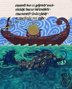 La qualité des illustrations et sa réelle maîtrise picturale nous rappellent que JUNG était également un grand amateur d’art, visiteur assidu de musées et qui, dans ses jeunes années, s’était adonné à la peinture et à la sculpture. Dans son Liber Novus, il déploie un univers pictural singulier – riche en arabesques et en couleurs vives – qui emprunte aussi bien à l’iconographie médiévale qu’aux arts non occidentaux et à l’avant-garde du début du XXe siècle.